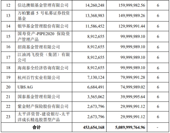 昨日晚间,国联证券发布了定增结果公告,国联证券向共23名特定对象非公开发行4.54亿股人民币普通股(A股),发行价格为11.22元/股,募集资金总额为人民币50.90亿元,在扣除相关发行费用后,募集资金总额为人民币49.83亿元。