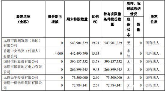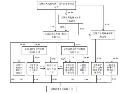 截至2021年末,公司控股股东无锡市国联集团直接持股19.21%,并通过国联信托等间接持股29.40%,合计持股48.60%。实际控制人为无锡市国资委。