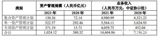 截至2021年末,公司管理的资产管理计划共计238个,资产管理业务受托资金1024.12亿元,同比增169.28%;其中,资产证券化业务规模371.19 亿元,同比增2262.76%。