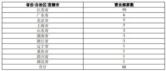 截至2021年末,国联证券有88家证券营业部,分布在全国11个省、自治区、直辖市。