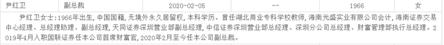 伊红卫自身的履历十分丰富,她前后在四家证券公司任职,在天同证券深圳营业部、中信证券深圳营业部、深圳分公司分别担任过副总经理、总经理、公司总经理兼财富管理部执行总经理。或许正是这些任职经历,让伊红卫一步步确认了自己的职业方向。