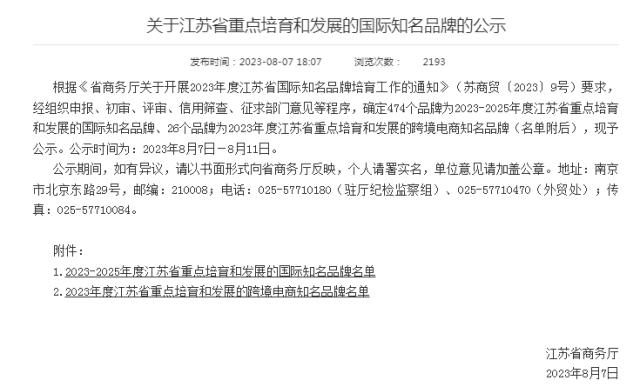 近日,江苏省商务厅公布2023—2025年度江苏省重点培育和发展的国际知名品牌名单,通用股份旗下QIMA品牌成功入选。