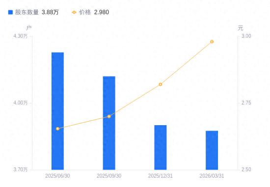 近一年(2024年12月31日至2025年12月31日),吉林高速A股股东户数从4.51万户,减低至3.9万户,降幅13.56%,区间股价上涨3.52%。