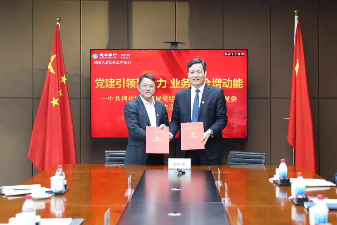 11月29日下午,瑞丰银行与柯桥区经信局签订党建联建协议,并就推进柯桥区企业高质量发展进行深入探讨交流。瑞丰银行党委书记、董事长吴智晖,柯桥区经信局党组书记、局长严炜出席活动并代表双方签约。柯桥区纺织产业服务中心党组成员、副主任蒋珊,党组成员、办公室主任喻伟祥,瑞丰银行党委副书记、行长陈钢梁,瑞丰银行党委委员、副行长秦晓君等参加活动。