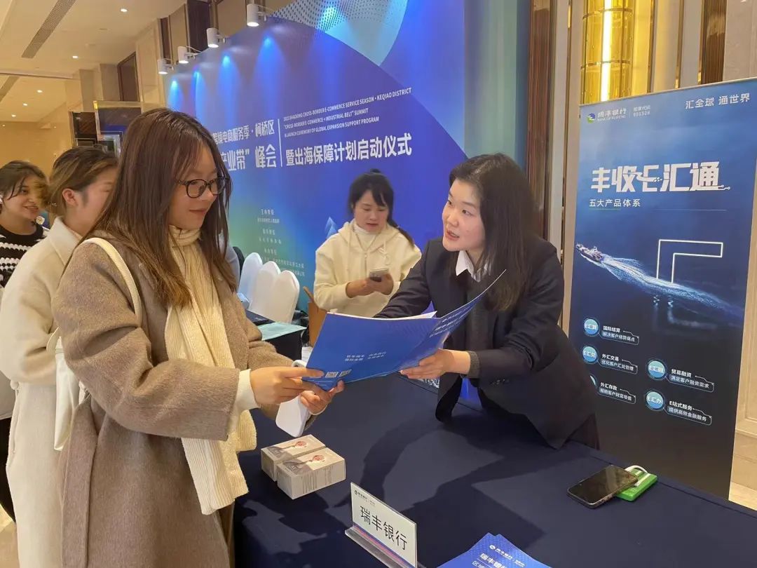 活动现场,瑞丰银行开展本行丰收E汇通品牌宣传,与外贸企业交流国际业务系列产品,针对外贸企业难点和需求提供外汇服务方案和减费让利政策。