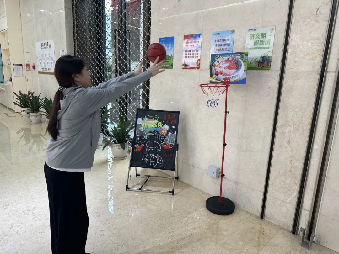 以“浙BA赛事”为切入点,瑞丰银行在各网点厅堂开展“厅堂浙BA”活动,让网点转型“有温度刚刚好”。走进网点,可以看到一个小型的篮筐放置在网点显眼处,网点负责人正有条不紊地组织客户参加“厅堂浙BA”投篮活动,大朋友小朋友都摩拳擦掌地跃跃欲试,不少客户表示到“家门口的浙BA在家门口的银行里就能体验到,真的是太有参与感了!”