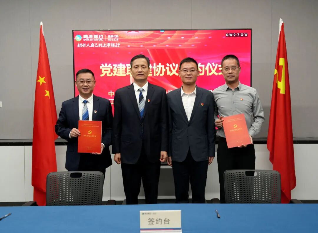 11月4日下午,钱清街道党工委与瑞丰银行党委党建联建签约仪式在瑞丰银行镜湖数字金融中心举行。瑞丰银行党委书记、董事长吴智晖,钱清街道党工委书记屠新永出席活动并致辞。钱清街道党工委副书记、办事处主任董海帆,党工委副书记茹伟炎,党工委委员(宣传委员)韩赵娜,党工委委员(组织委员)傅链华,党工委委员蔡妹姝;瑞丰银行党委副书记、行长陈钢梁,党委委员、副行长严国利、秦晓君、宁怡然参加活动。