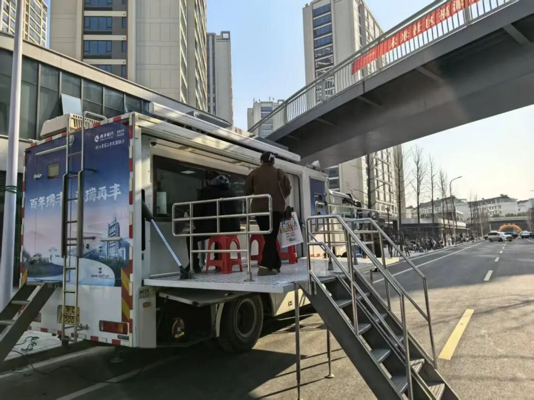 福全支行将流动服务车开进福全街道金三角未来社区安置房交付现场,5天累计服务村民50余人次,办理业务50余笔,吸收存款1372.24万元,签约共富贷60万元。村民由衷赞叹:“楼下就能办业务,太贴心了!”