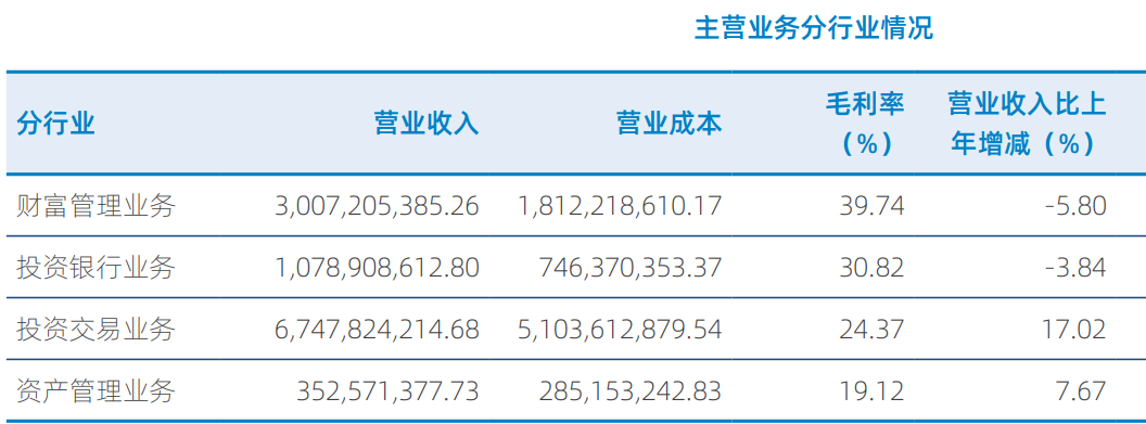 多年前,东吴证券就已经将经纪业务纳入财富管理业务板块,传统的经纪业务更多是靠天吃饭,客户有交易才能赚取交易佣金。而财富管理服务则包括证券期货经纪、投资研究、投资顾问、产品销售、融资融券等综合性金融服务,能够为客户创造更大的价值,有效对冲了经纪业务下滑带来的影响。