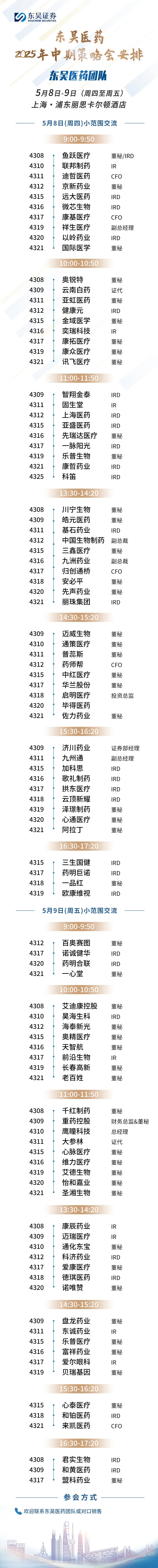 精彩即将开始!东吴证券2025中期策略会医药小范围交流安排【东吴医药朱国广团队】