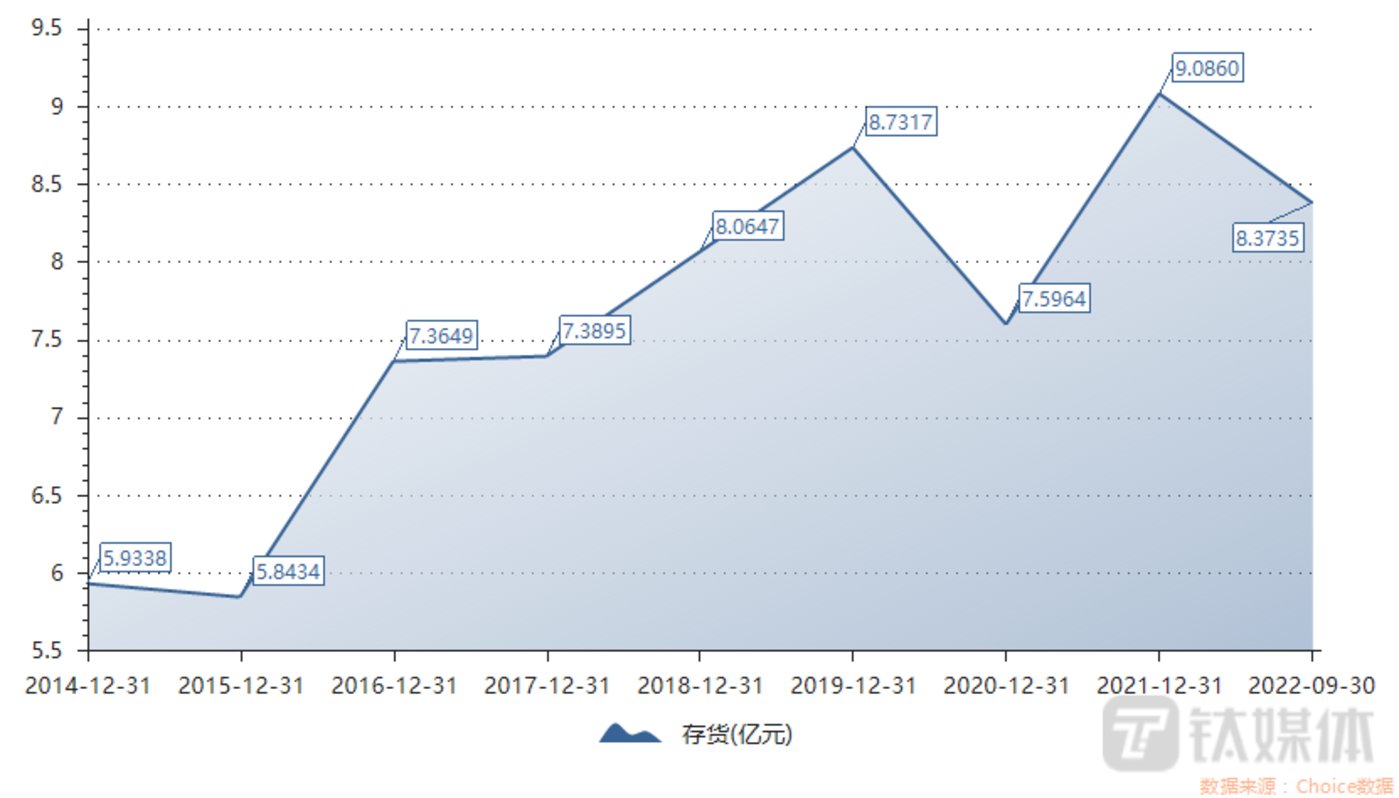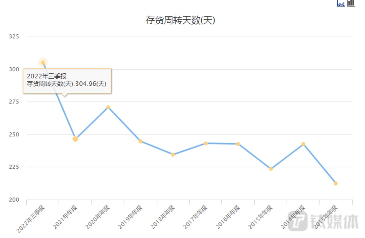 尽管九牧王倾力聚焦渠道疏通,不断关店、消减库存,但收效甚微。2022年三季报显示,存货余额8.37亿元,接近其流动资产三成,存货周转天数达到304.96天,对存货计提了1.71亿元的资产减值损失。