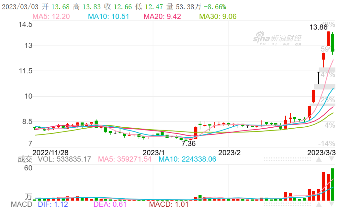 2月24日,九牧王股价毫无征兆地启动,从8.60元一口气连涨五个涨停,5个交易日累计上涨61%,已经是在A股交易规则下的极限涨幅。