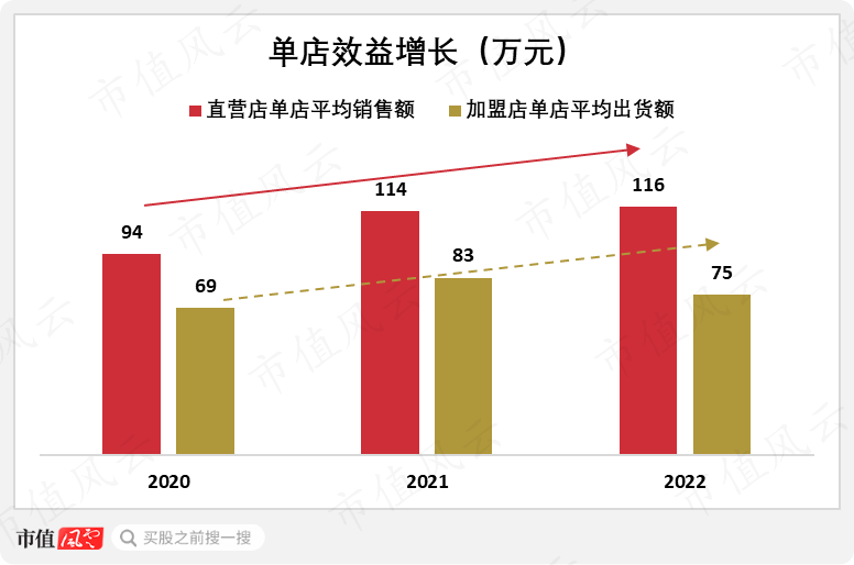 销售渠道的变革,直接驱动单店效益的提升:2020-2022年,九牧王直营店单店平均销售额由94万元提升至116万元;加盟店单店平均出货额由69万元提升至75万元。