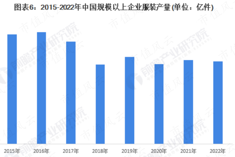 服装产量侧面反映了这一过程:2015-2022年,国内规模以上企业服装产量持续下降,2022年服装产量为232亿件,同比下降3%左右,较2015年的308亿件则下降了25%。