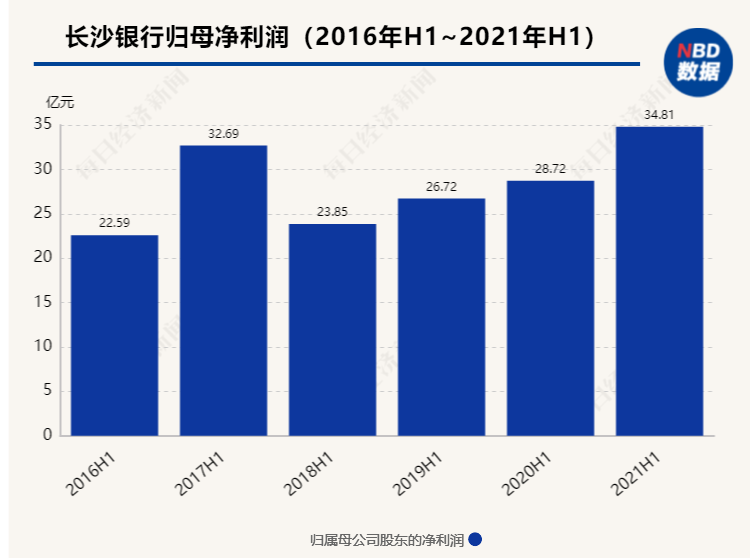财报数据显示,2021年上半年,长沙银行实现营业收入103.58亿元,同比增长17.33%;净利润34.81亿元,同比增长21.18%;截至六月末,长沙银行资产总额7592.20亿元;不良贷款率1.20%;拨备覆盖率296.76%。