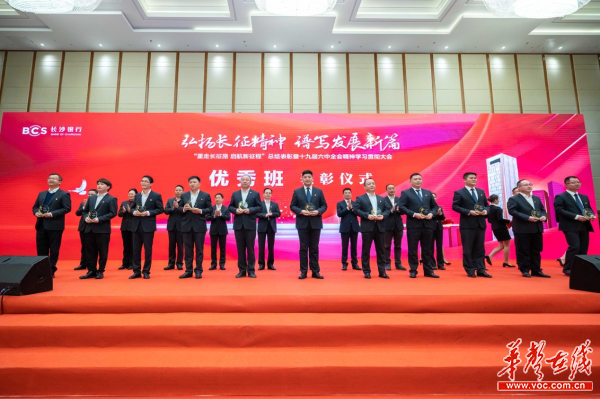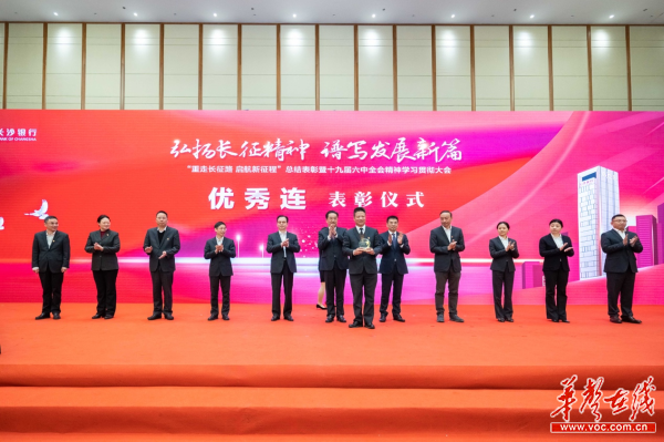 会议现场,长沙银行党委副书记、监事长吴四龙宣读表彰决定,对在长征路途中表现突出的优秀连、排、班、优秀基层组织及“百名书记行走党课”精品课程进行表彰。