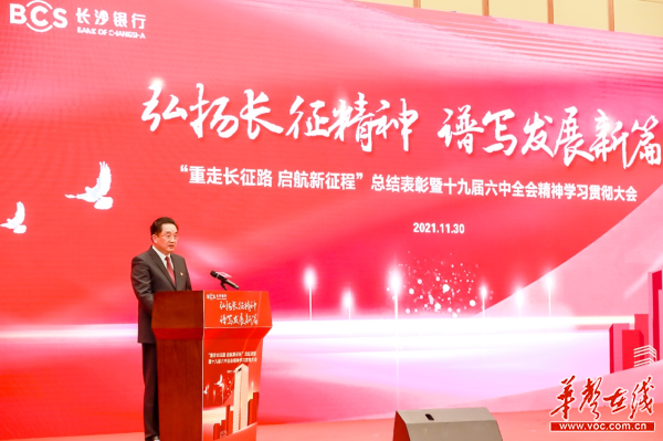 长沙银行党委书记、董事长、行长赵小中表示,要继承好、弘扬好伟大的长征精神,走好走稳新时代长沙银行的赶考路,勉励全体长行人“守住一颗心、高举一面旗、走好一条路、把住一根线、共圆一个梦。”要守住党员干部入党初心、守牢长沙银行设立初心、守好金融企业初心,将加强党的建设作为国有企业的“根”和“魂”,主动融入和服务省市战略、服务和支持实体经济、促进经济调整、转型、升级、支持科技经济、数字经济、绿色经济发展。同时,全行上下要把学习十九届六中全会精神和省党代会精神作为当前和今后一个时期的重大政治任务,做到持续深入学、融会贯通学、联系实际学,推动宣传贯彻走深走实、会议精神入脑入心。