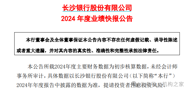 2024年已然过去,不少银行纷纷通过快报形式向外界展现过去一年经营情况。此时此刻,长沙银行(601577.SH)也成为其中一员。