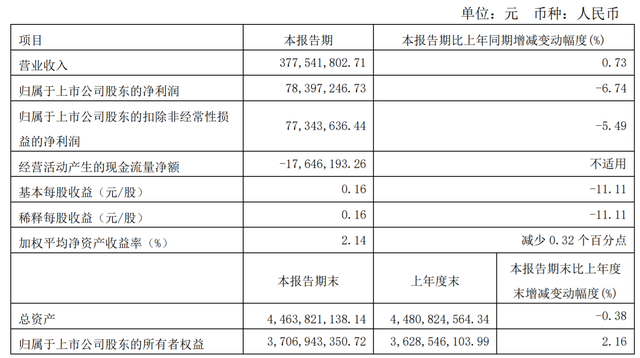 公告显示,会稽山2022年一季度营业收入为3.78亿元,同比上升0.74%;归属于上市公司股东的净利润为7839.72万元,同比下降6.74%。