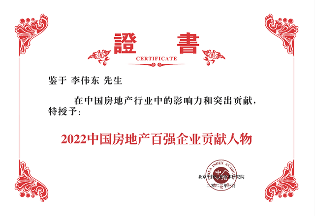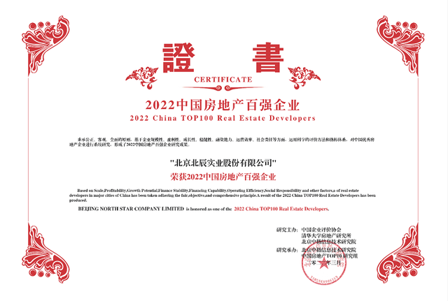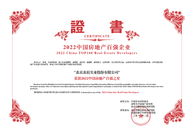 2022年3月31日,由中国企业评价协会、清华大学房地产研究所、北京中指信息技术研究院主办,北京中指信息技术研究院中国房地产TOP10研究组承办的“2022中国房地产百强企业研究成果发布会暨第十九届中国房地产百强企业家峰会”在京举行,北辰实业依托复合地产开发运营优势以及会展品牌综合影响力实现了稳健发展,综合实力再上新阶,荣获“2022中国房地产百强企业”、“2022中国房地产百强之星”荣誉,李伟东先生荣获“2022中国房地产百强企业贡献人物”荣誉。