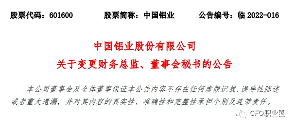 目前,中铝股份官方网站中财务总监公示尚未变更,财务总监兼董事会秘书仍然是王军。