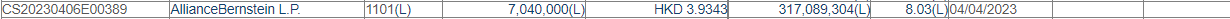 增持后,AllianceBernstein L.P.最新持股数目为317,089,304股,持股比例由7.86%上升至8.03%。