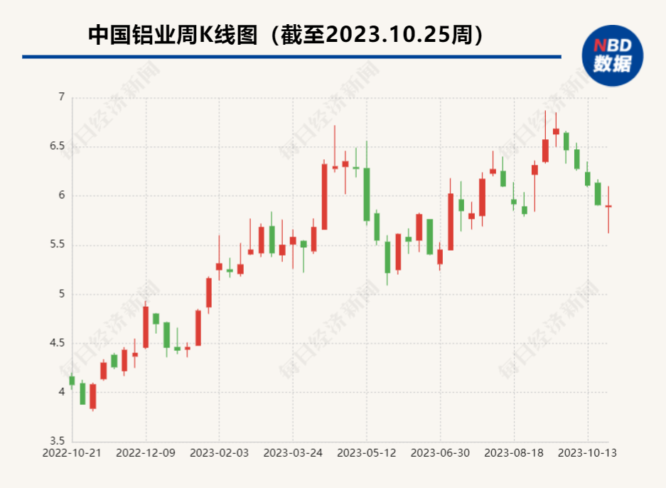 10月25日晚间,中国铝业(SH601600,股价5.90元,市值1013亿元)发布2023年三季度业绩报告。