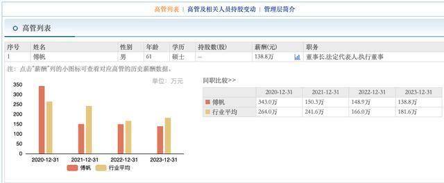在薪酬方面,根据东方财富提供的数据,傅帆近年来的薪酬有所调整。从2020年的343.0万元,到2021年的150.3万元,再到2022年的148.9万元,以及2023年的138.8万元,尽管薪酬有所波动,但傅帆始终保持着对工作的热情和专注,引领中国太保不断前行。