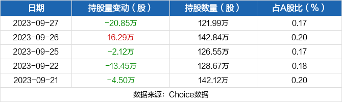 近五日持股量数据