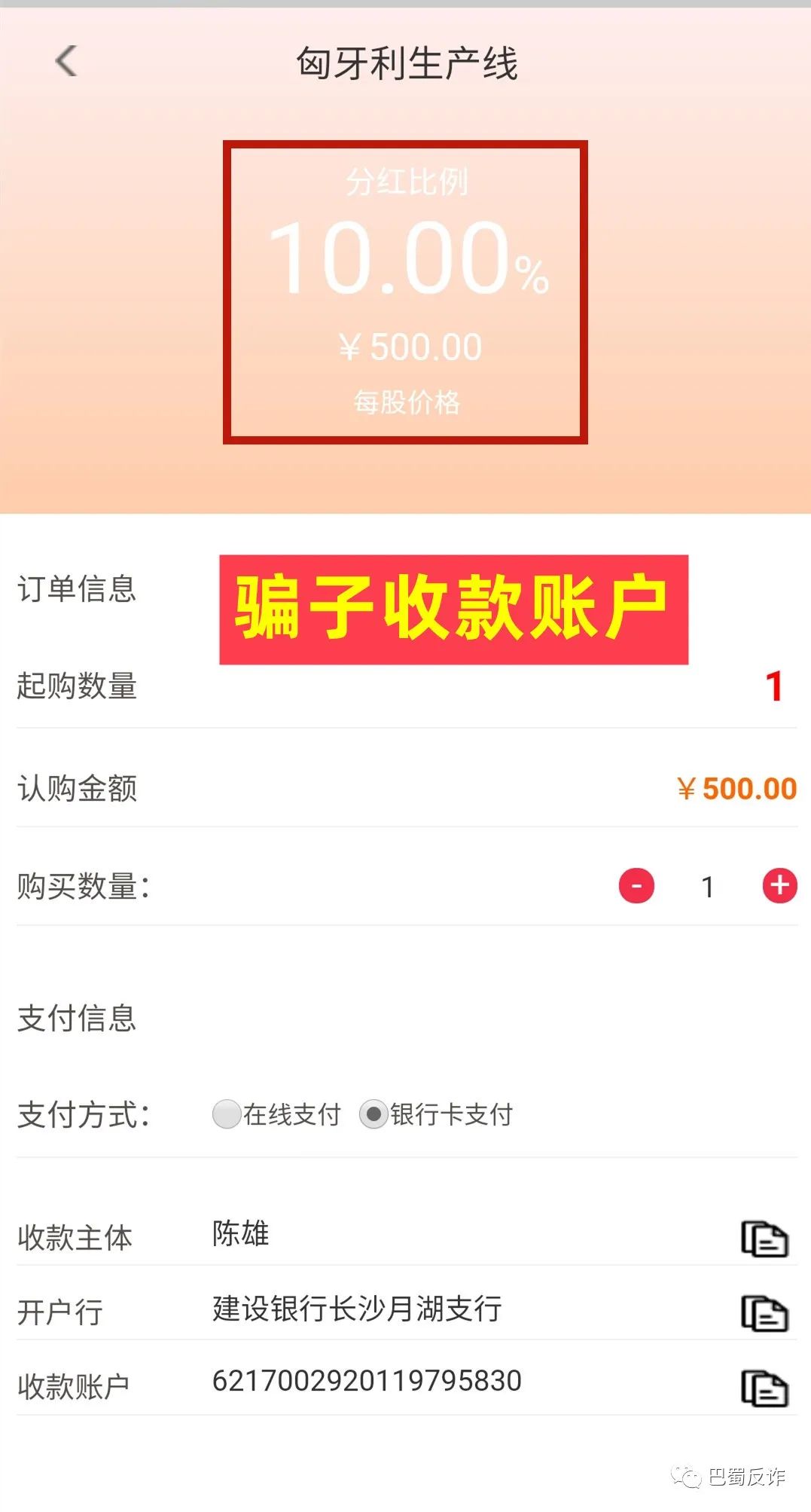 在“生产股权”交钱的页面中,骗子们的嘴脸暴露无疑了。请看收钱的个人银行卡账户。我国有规定,任何公司的经营收款账户必须是以公司名称开户的对公账户,不允许个人账户收款,何况上市公司的财务要接受更多有关部门的监管,因此这个个人银行卡收款是骗子的账户了。