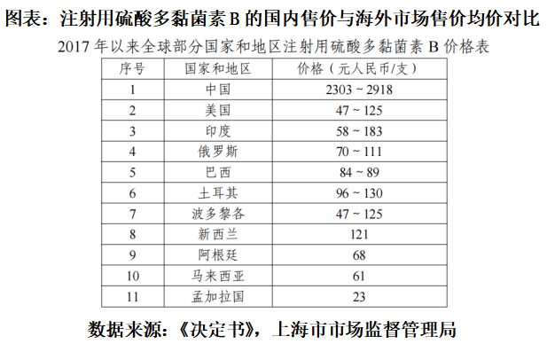 由于硫酸多黏菌素B原料药是生产注射用硫酸多黏菌素B的必需原材料,中国没有企业生产该原料药,只能从境外进口。《决定书》显示,通过与海外原料药厂家签订供货协议、贿赂海外原料药厂中国区销售负责人等方式,汇海方首先控制了中国硫酸多黏菌素B原料药的进口供应。