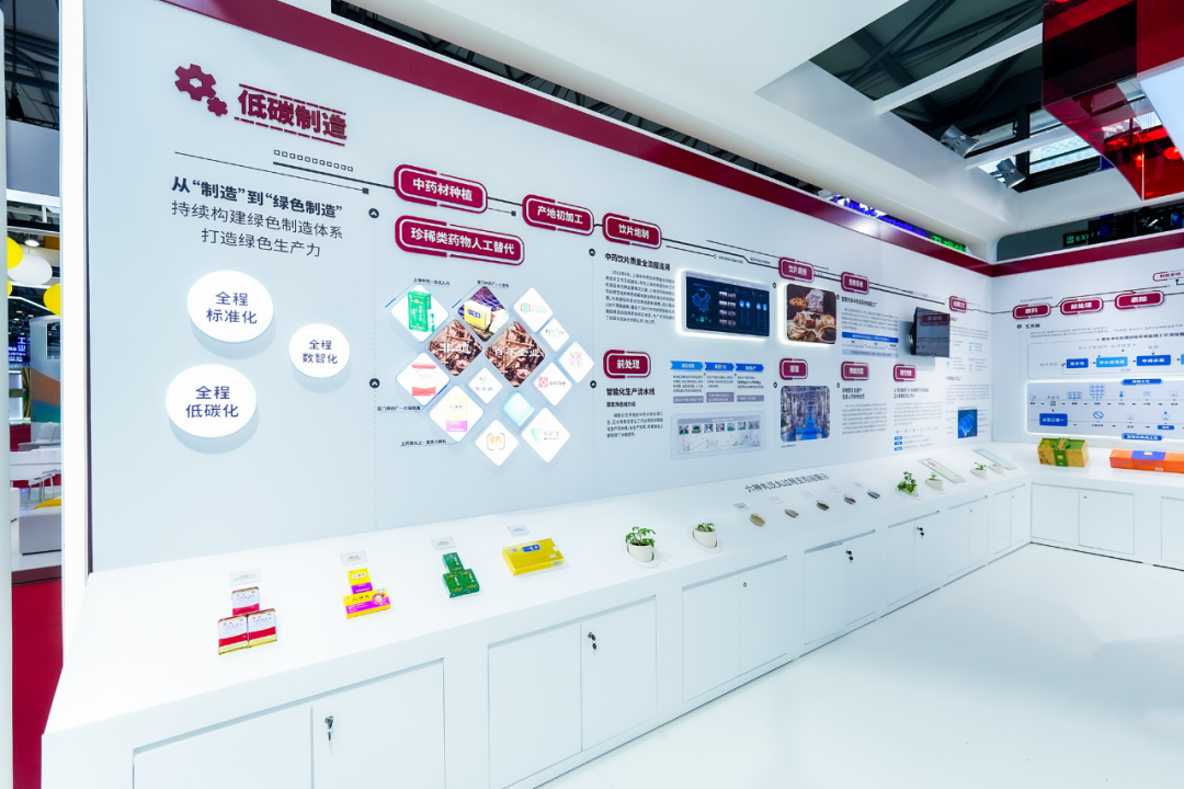 在低碳制造方面,上海医药通过技术革新实现提质增效降碳,以中药产业链的全生命周期为核心,全面展示了非遗技艺及百年老字号品牌魅力。上药药材展示了饮片质量全流程追溯体系,率先构建“从田头到床头”全流程追溯体系,运用5G、物联网、大数据分析等先进技术,建立符合GAP管理要求的种植全过程标准化管控模型和标准化数据集;上药青春宝呈现了中药前处理工艺流程、中药创新及未来工厂成果;上药中华带来了龙虎人丹等传统中药产品;上药雷允上则展示了杏灵数智精益制造平台;上药厦中旗下重点产品八宝丹展现了其在林麝养殖方面,为推动中医药传承创新和乡村振兴带来的突破与亮点。这些展示内容充分彰显了上海医药在绿色制造、节能技改方面所做的努力,以及通过科技创新推进产业能级提升,为绿色可持续发展做出的积极贡献。