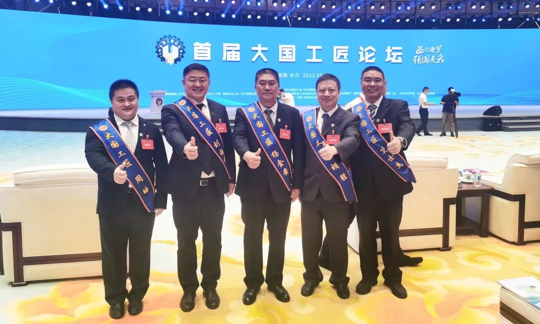 ↑?图为杨金安(中)在首届大国工匠论坛现场