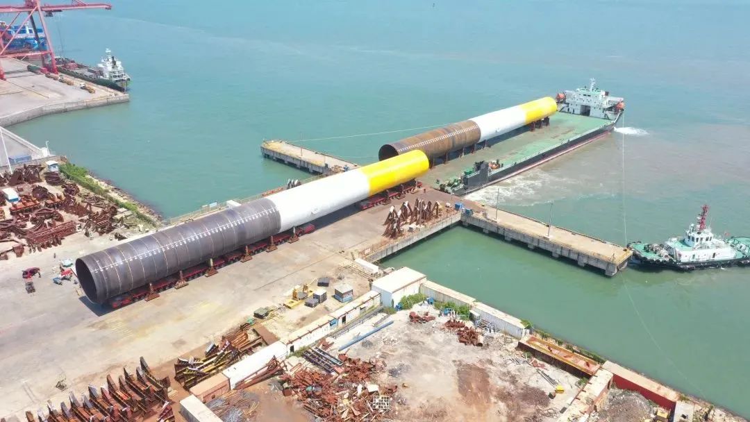 ↑这是今年4月12日,由中信重工制造的单桩在中信重工漳州基地码头下线时的场景。