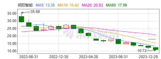 2023年一季度,公司业绩突然暴雷,营收27.2亿元,同比下降61.84%;归属净利润亏损2.26亿元,创下上市以来首次单季度亏损纪录,业绩一出,明阳智能股价于开盘后快速跌停。