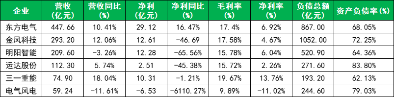 2023年前三季度,明阳智能营收和净利润双双下滑,与同样偏重海风业务的电气风电一起交出了整机商最差业绩。