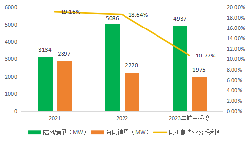 2021-2023q3明阳智能海上风机销量及风机销售毛利率