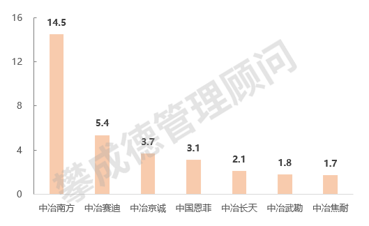 在净利润方面,中冶南方与其他六家工程公司拉开了很大差距,是唯一一个突破10亿的工程公司,达到14.5亿元,接近中冶赛迪的三倍;中冶赛迪位列第二,净利润5.4亿元;第三名为中冶恩菲,净利润3.7亿元;中冶武勘和中冶焦耐的净利润接近,二者相差了623万元。