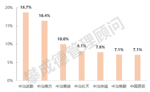 从图4可知,共有三家工程公司的净资产收益率超过了10%,这次中冶武勘超越了中冶南方,位列第一,达到18.7%;中冶南方位列第二,净资产收益率16.4%;中冶赛迪第三,为10.0%;中冶焦耐和中冶恩菲净资产收益率接近,前者为7.12%,后者为7.09%。