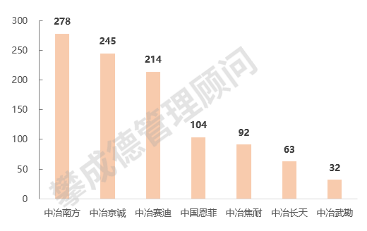 在总资产方面,有三家工程公司规模超过200亿元:第一为中冶南方,总资产278亿元;中冶京诚排名第二,总资产245亿元;中冶赛迪紧随其后,总资产为214亿元,超过第四名110亿元。