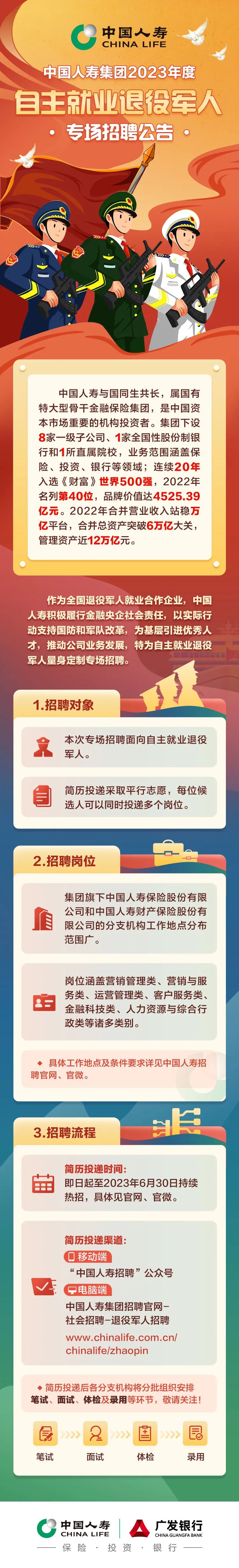 速速关注!中国人寿2023年度自主就业退役军人专场招聘火热进行中