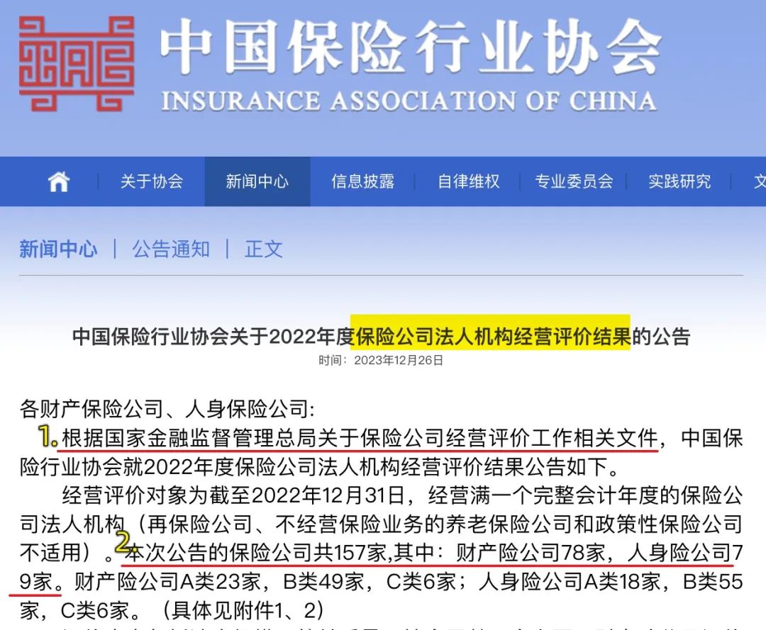 今日,保险行业协会下发《关于2022年度保险公司法人机构经营评价结果的公告》,公布其对157家险企的经营评级结果,详见上图。