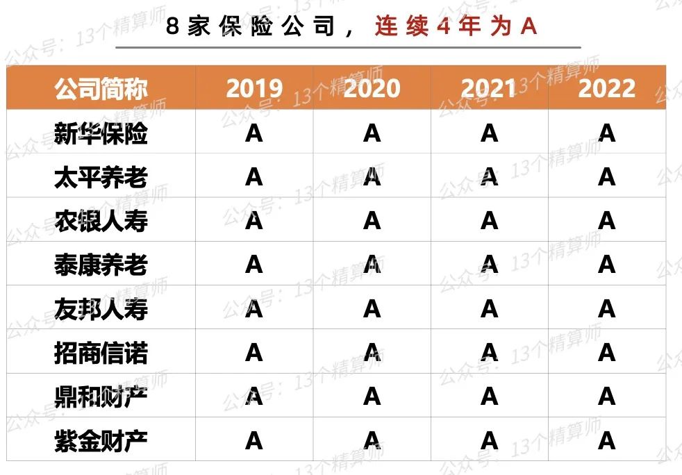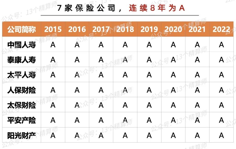 2. 7家险企,连续8年评为A!8家险企近4年连续为A~