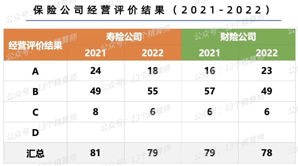 2. 2022年险企经营评价:A类财险公司增加,A类寿险公司减少!
