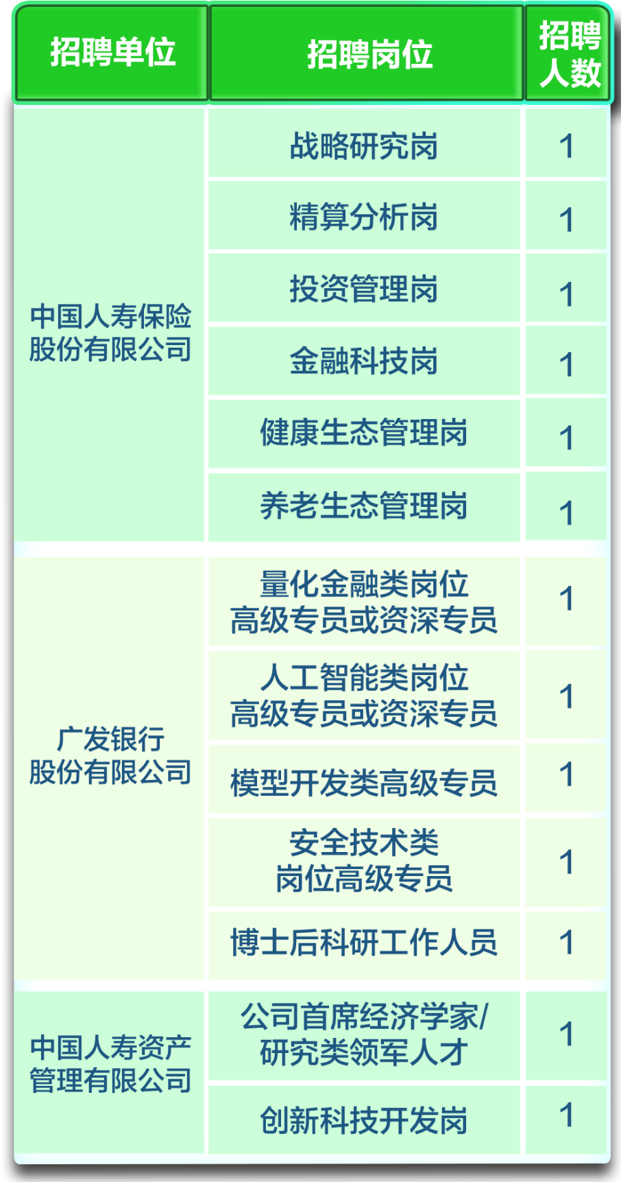 注:寿险公司、资产公司岗位工作地点在北京,广发银行岗位工作地点主要在广州/佛山。