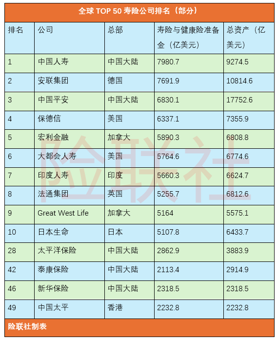 中国人寿超过此前的安联保险集团(Allianz Group),成为全球最大的寿险公司,中国平安列第三位。
