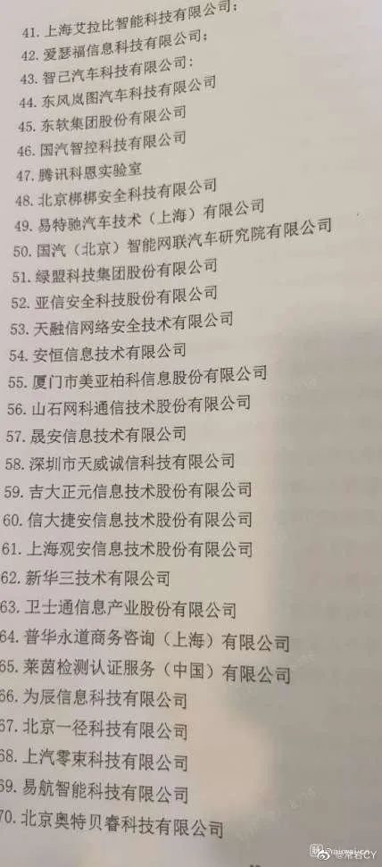 与此同时,里面也不乏华为、小米、百度、阿里、美团、奇虎360、腾讯(科恩实验室)、大疆这类通过直接造车,或是提供解决方案、投资车企来间接跑入汽车赛道的互联网巨头。更甚者,包括普华永道商务咨询、莱茵检测认证服务这类企业也包含在内。
