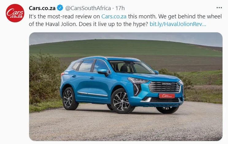 2021年4月,哈弗初恋于南非上市,凭借其惊艳的颜值及精准的年轻化定位,广泛触达年轻用户群体,出道即巅峰。上市首月即摘得小型SUV细分市场第一的桂冠。6月,第三代哈弗H6实现全主流媒体平台霸屏上市。第三代哈弗H6洞悉南非人注重家庭、喜爱户外出行的人群特点,定位满足家庭出行需求的智能家用SUV,上市至今稳居紧凑型SUV细分市场前三的地位。
