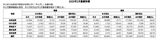 今年2月,长城的销量同比下滑了20%。长城表示,主要原因是博世生产的车身电子稳定系统(ESP)供应不足(博世为长城汽车主力车型ESP配置的独家供货商)。