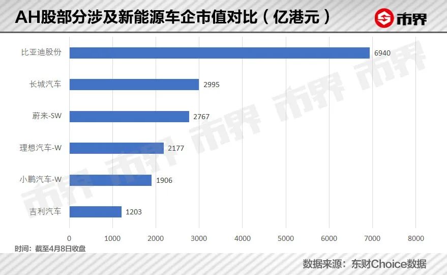 截至4月8日收盘,长城汽车报26.34元/股,并于盘中再度创下一年多以来新低,总市值2433亿元,动态市盈率只有36.17,而同样位于A股,且宣布停止生产燃油车的比亚迪,动态市盈率高达233.24,是长城汽车的6.5倍。